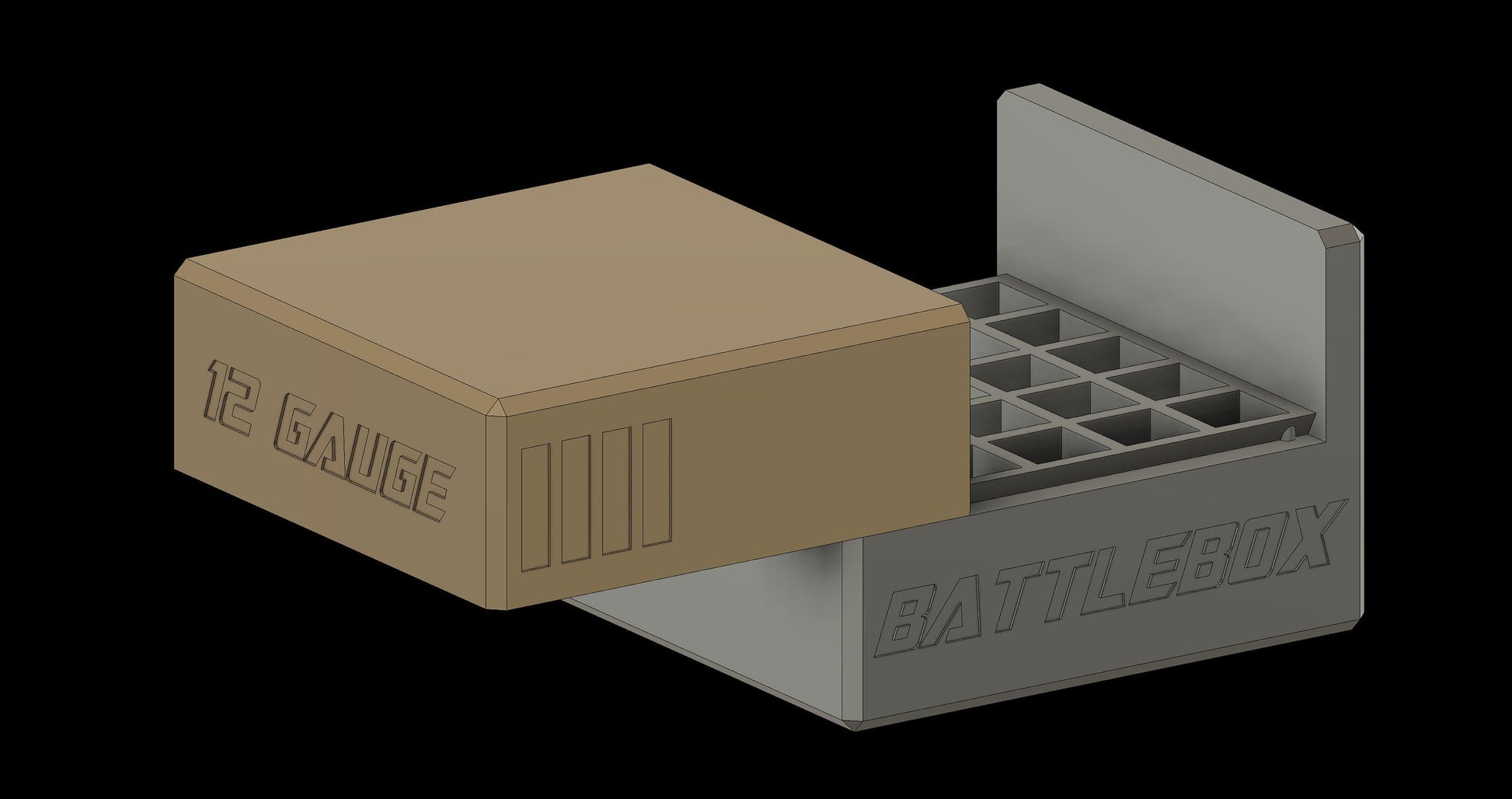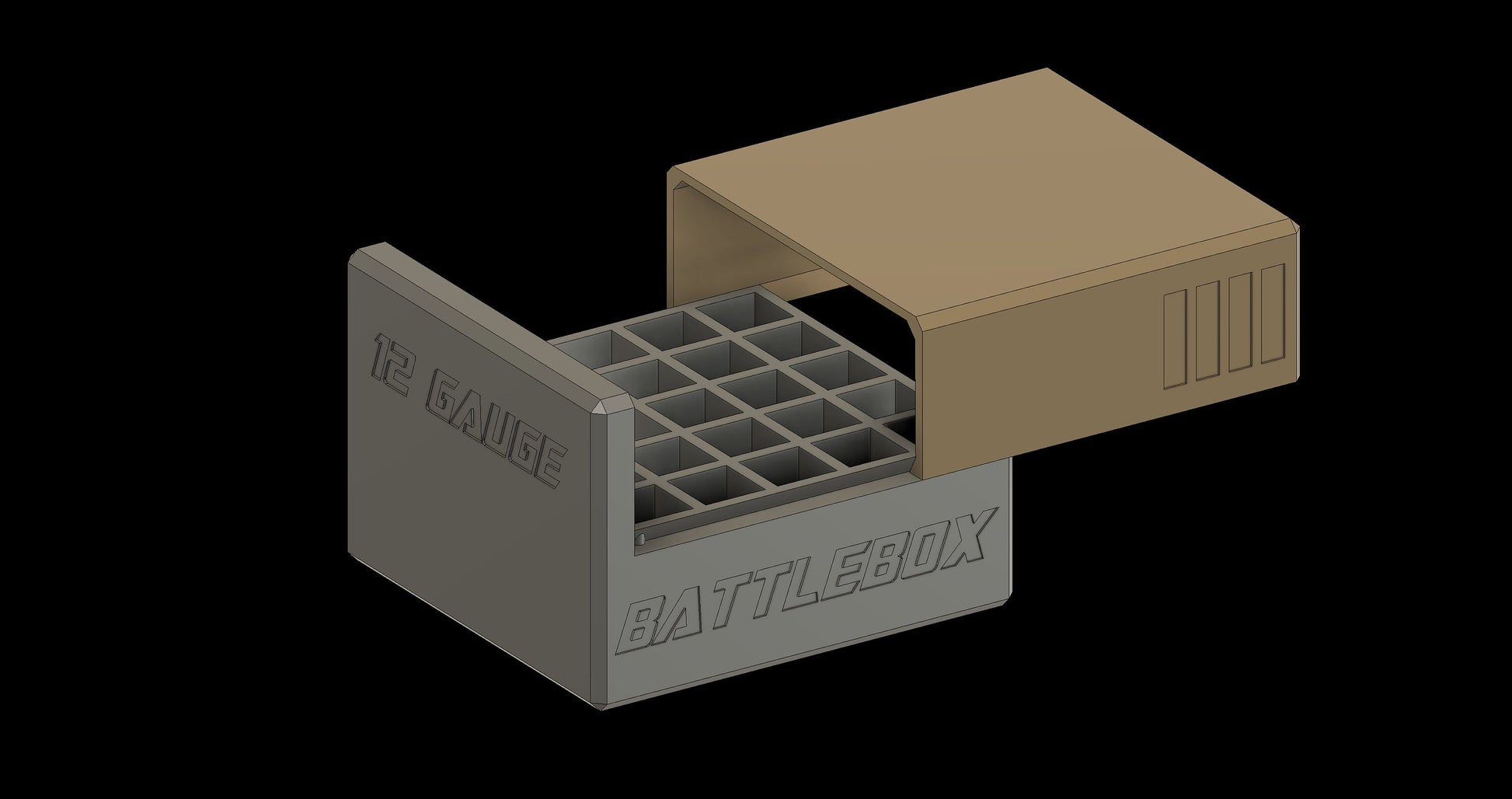- Markings: “Battlebox” engraved on the sides & “12 Gauge” engraved on ends (customizable)
